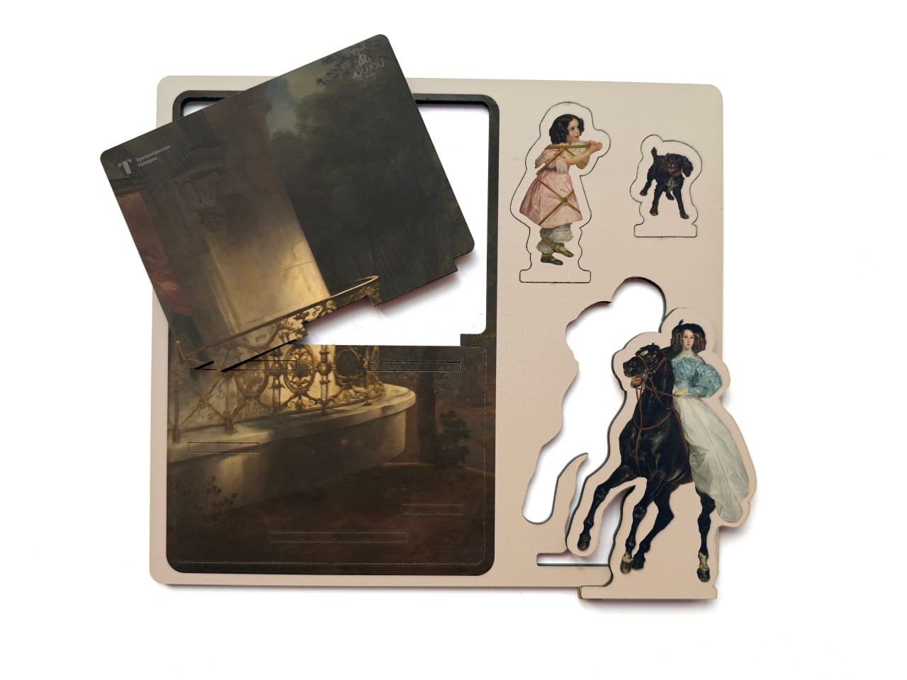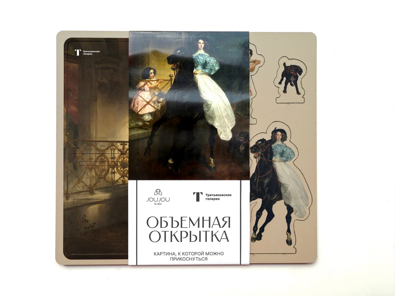 Объемная открытка —  изящная pop-up конструкция, выполненная из натурального дерева, в которой сцена с работы художника оживает в трёхмерном пространстве.
